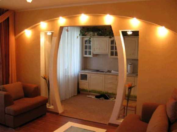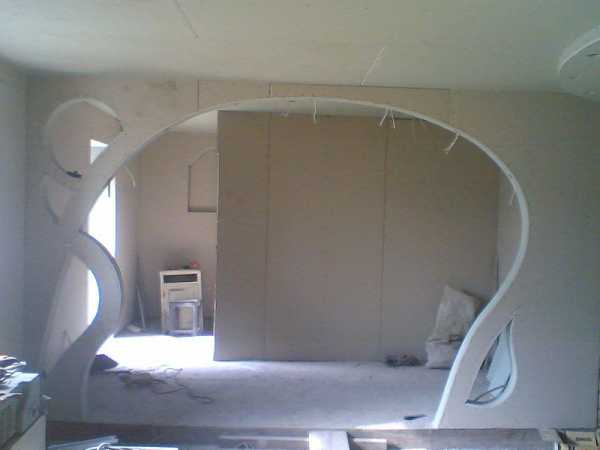 Чаще всего именно ГКЛ используют при устройстве красивых арок, оригинальных фигурных перегородок и других разграничивающих пространство конструкций.