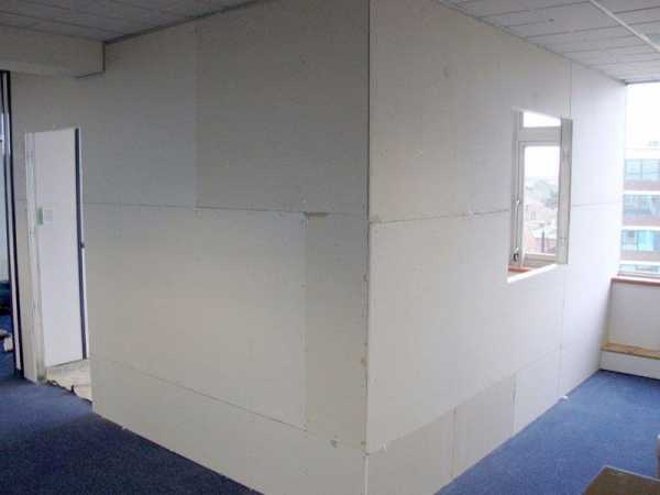 В месте установки стены из гипсокартона пол, потолок и стены должны иметь окончательную штукатурку. Необходимо проверить ровность поверхности. При наличии дефектов их надо устранить (выпуклости снять, ямки зашпатлевать). Вертикальность стен проверяется отвесом.