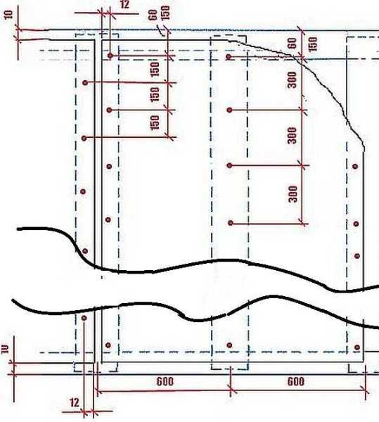 Листы крепятся с помощью шурупов-саморезов размером 3,5х35 мм. Сначала крепятся края в углу гипсокартона, а затем – края в средине и по линиям касания с каркасом. Расстояние между шурупами составляет 10-25 см. Шурупы вкручиваются до погружения шляпки в картон. Важное условие – гипсокартон устанавливается с зазором до пола порядка 10-15 мм. Так производится облицовка одной стороны каркаса.