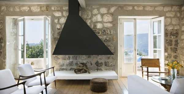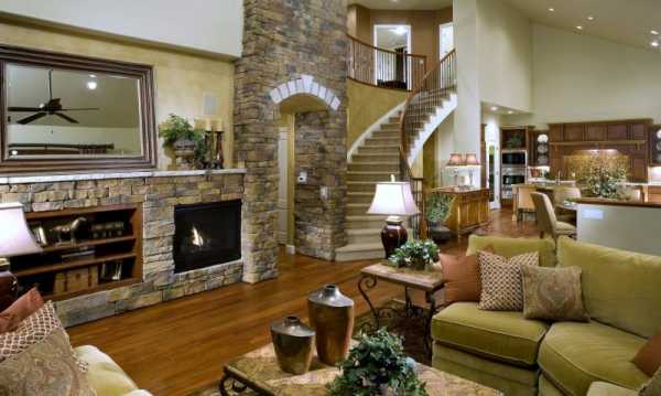 Чтобы придать интерьеру эффект старины, рекомендуется использовать крупнозернистый камень с целью отделать при помощи него дверные проемы, камины, а также арки.