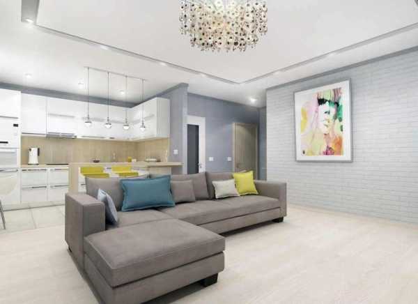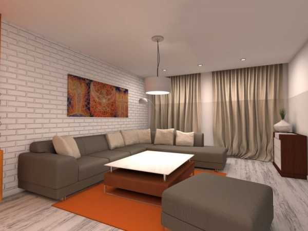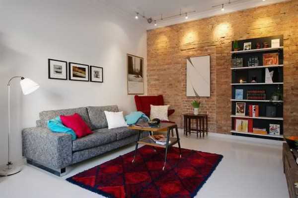 Кирпичная стена светлого оттенка в интерьере гостиной