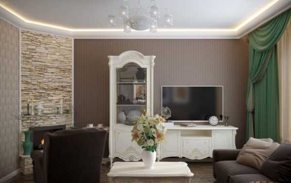Простой и спокойный стиль Прованс тоже позволяет использовать в отделке гостиных декоративный камень.