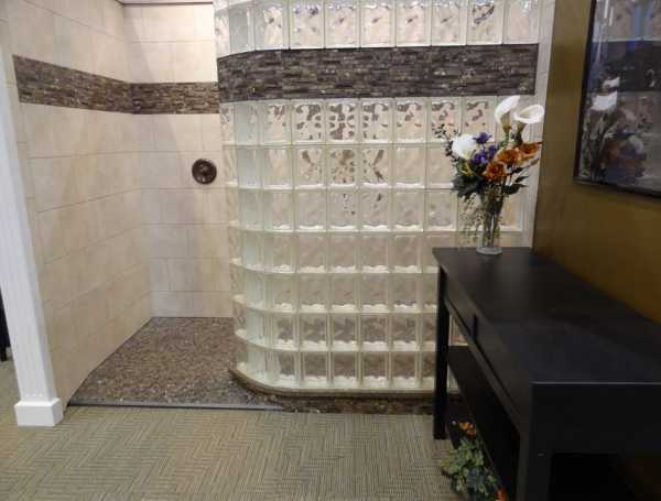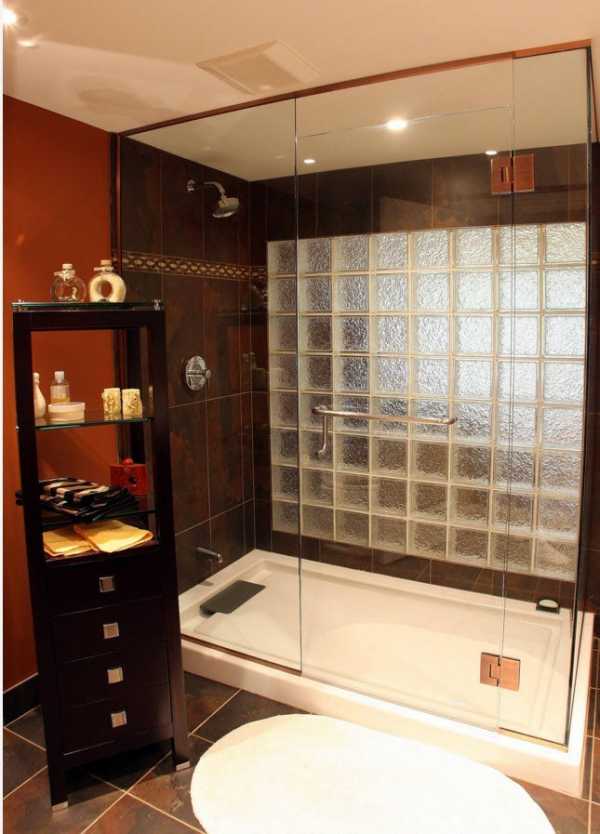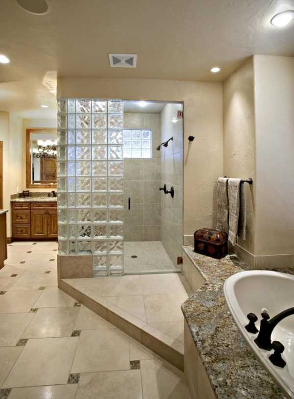 - стеклоблочные перегородки способны задерживать тепло, создавая комфортную атмосферу для принятия водных процедур.