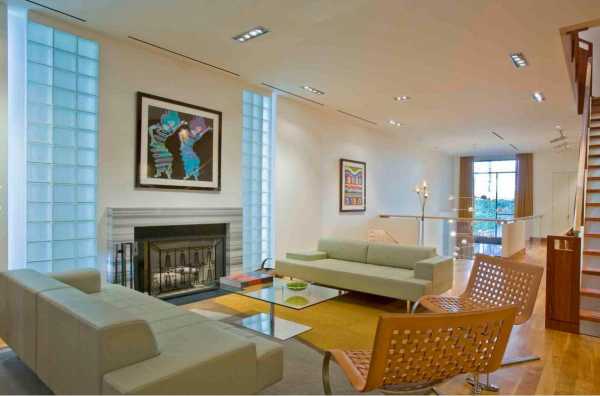 Но не только в ванных комнатах можно встретить окна из стеклоблоков. Оригинальность и практичность привносит этот недорогой материал в пространство гостиной. В этом случае стеклянные изделия используются не только за свои функциональные качества, но и в виде декоративного элемента.