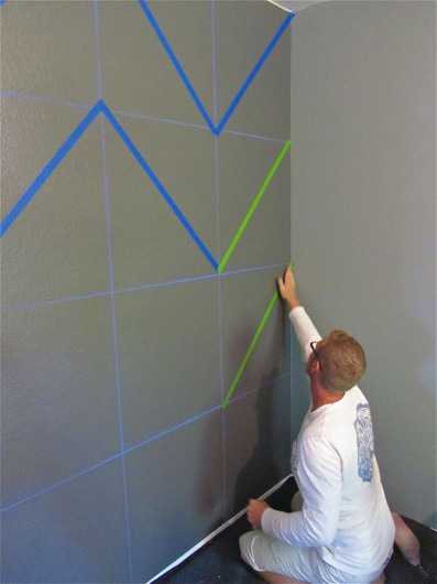 Представляем вашему вниманию способ, как можно нанести на стену необычный узор. В нашем случае это простой зигзаг, но вы можете сделать что то другое, все зависит от вашей фантазии.