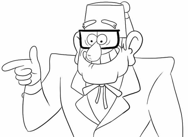Итак, рисунок готов, теперь вы знаете, как нарисовать Стэна Пайнса из Гравити Фоллс поэтапно карандашом.