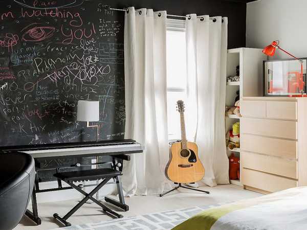 - благодаря всевозможным оттенкам, стена для рисования подойдет ко многим интерьерам;