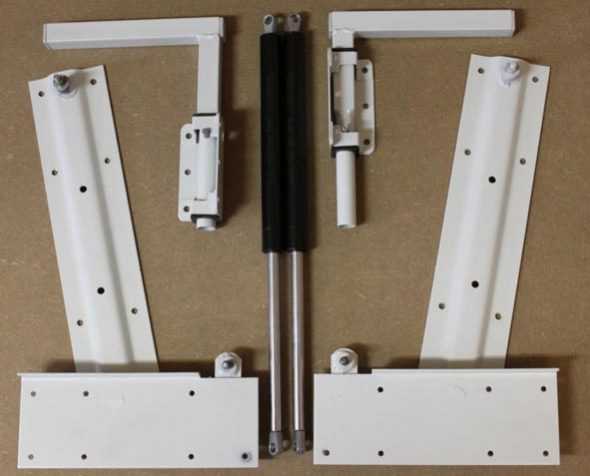 - пара фурнитуры для откидных кроватей с поворотной опорой и упором для газовых амортизаторов;
