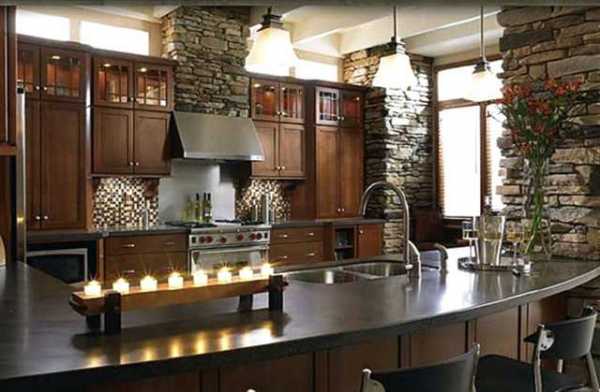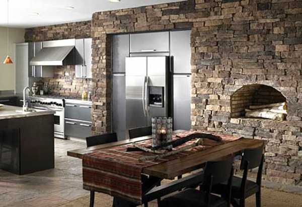 В последнее время все больше ценятся и используются натуральные материалы, такие как камень и дерево, ведь прежде всего материал должен быть экологически безопасным. Природный декоративный камень, ровно, как и искусственный, позволяет создать неповторимый интерьер в доме. Сочетание камня со стеклом или металлом при наличии хорошего освещения и живых растений сделает помещение стильным и уютным. Чаще всего отделку стен камнем используют в гостиных, прихожих, а также на кухне.