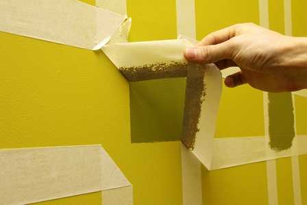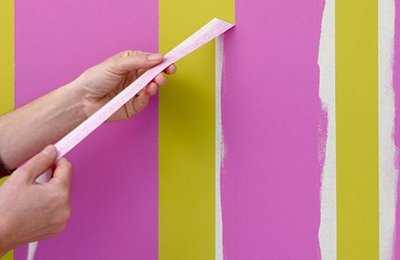 Совет. Если вы впервые собираетесь покрасить стены в полоску, можно потренироваться на небольшом участке стены или куске фанеры, сделав все по алгоритму: базовый слой краски, разметка, наклеивание малярной ленты, нанесение краски второго цвета, снятие скотча. Обратите внимание, насколько плотно легла лента, не подтекла ли краска под нее, легко ли снялась лента и т.п. Учтите все нюансы и принимайтесь к покраске стен.