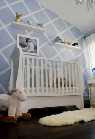 Если наклеить скотч перпендикулярно, можно покрасить стену квадратами и ромбами. Технология такая же, как описано выше.