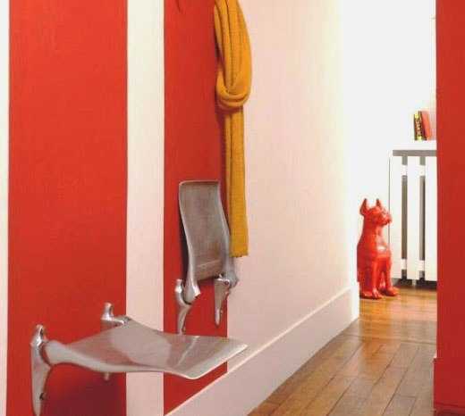 Красные широкие вертикальные полосы на стенах коридора — оригинально