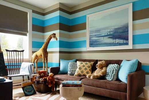 Собираясь покрасить стены в полоску, решите, какой эффект желаете получить. Играя с размерами и цветами полос, можно создавать совершенно разные картины интерьера.