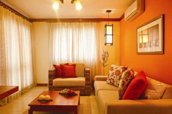 Оранжевые стены в интерьере