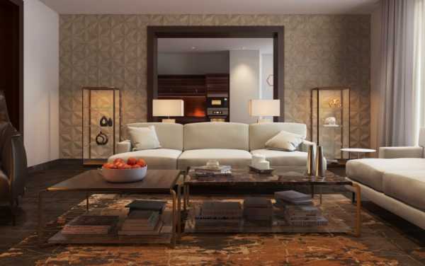 На оформление стен в зале влияет и фактура отделочных материалов.