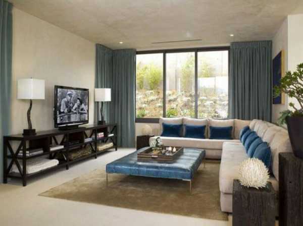 - Окна с панорамным остеклением – неотъемлемая часть объемно-пространственной структуры гостиной, характеризующей стиль контемпорари в интерьере. Фото ультрасовременных интерьерных композиций в манере этого направления дизайна демонстрируют наглядный пример моделирования пространства за счет совмещения лоджий с гостиной и установки крупноформатных стеклопакетов. В качестве убранства для окон нужно выбрать практичные одноцветные римские шторы или жалюзи, гармонично сочетающиеся с мебельной обивкой, ковром и другими предметами текстиля.