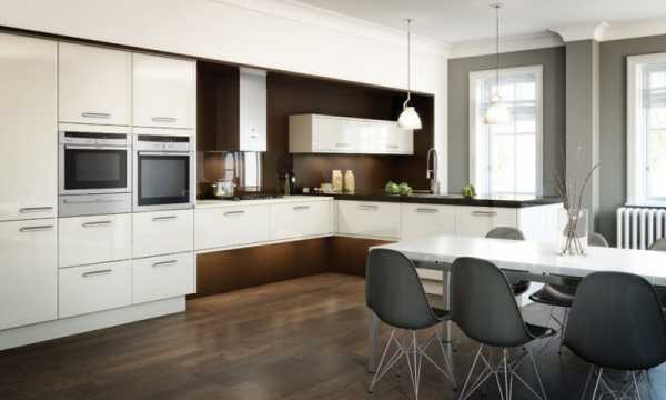 Стиль контемпорари в интерьере квартиры по манере оформления имеет схожие черты с современными направлениями дизайна: модерном, хай-теком, минимализмом. Поэтому на кухнях, олицетворяющих этот новомодный интерьерный жанр, прослеживается сдержанный характер стиля, обусловленный отсутствием выставленных напоказ предметов декора, бытовой техники и различной кухонной утвари, развешенной на штангах-рейлингах.