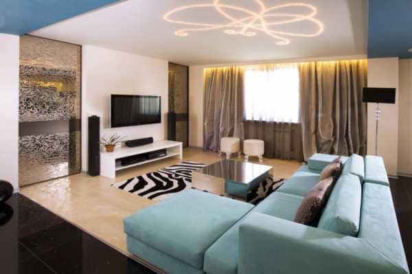 Совет! При желании организовать в гостиной зону отдыха актуальным будет обустройство фитостены, дополненной ковром изумрудного цвета, имитирующим газонную траву. Также можно установить газовый камин, а рядом с ним постелить на пол шкуру зебры, тигра или любого другого дикого животного. В такой умиротворяющей обстановке всегда будет расслабляющая атмосфера, позволяющая отдохнуть от интенсивного ритма жизни.