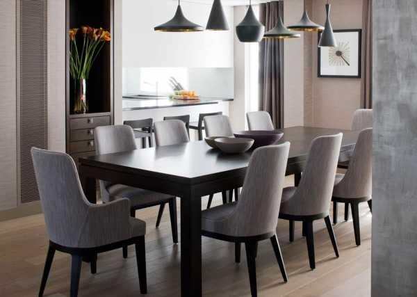 - Плеядой кухонных светильников с компактными плафонами из никелированной стали или прозрачного пластика, низко расположенными над обеденным столом.