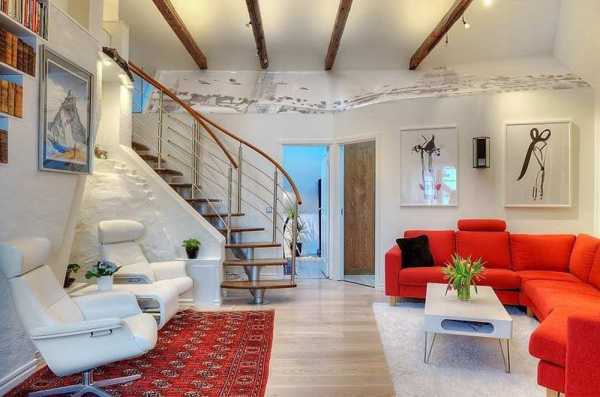 Лестница. При наличии высоких потолков, обустройство второго этажа – вопрос времени. Тщательно выбирайте лестницу. Отличный вариант – винтовая, из кованого металла. Монолитный бетон будет смотреться более громоздко.