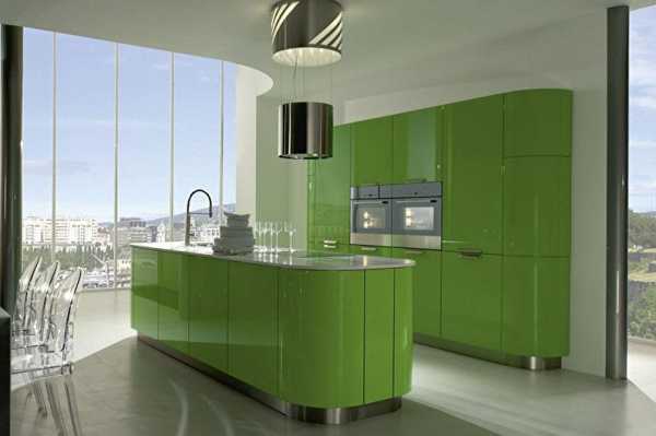 Зеленая палитра ассоциируется, прежде всего, с природой, отличаясь особой жизнерадостностью и позитивом. Для кухни в стиле минимализм можно выбрать любой оттенок от светло-салатового до травяного, но нужно учесть, что основная отделка должна быть выполнена в светлых нотках. Лучшим вариантом станет белый цвет, который чудесным образом остудит насыщенные тона и подчеркнет блеклые.