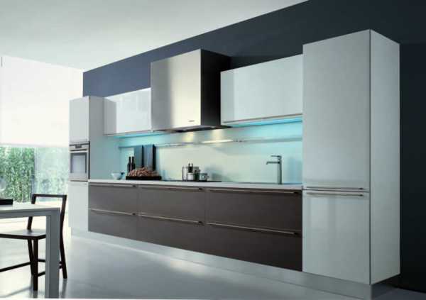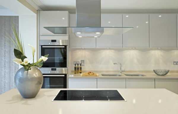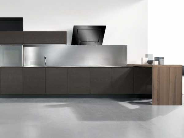 Строгость минималистического дизайна кухонной мебели сполна компенсируется ее продуманностью, удобством и функциональностью. Здесь будет уместна встроенная техника и мебель с закрытыми (глухими) фасадами. Вся мелкая техника должна быть спрятана «в недрах» кухонного гарнитура. Вытяжка над плитой часто выполняет не только практическую функцию, но и выступает в роли декоративного элемента.