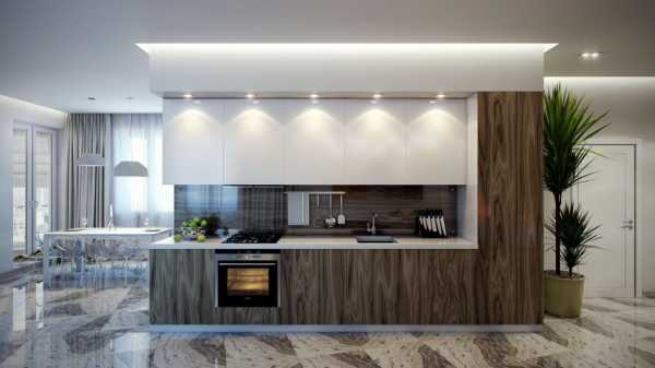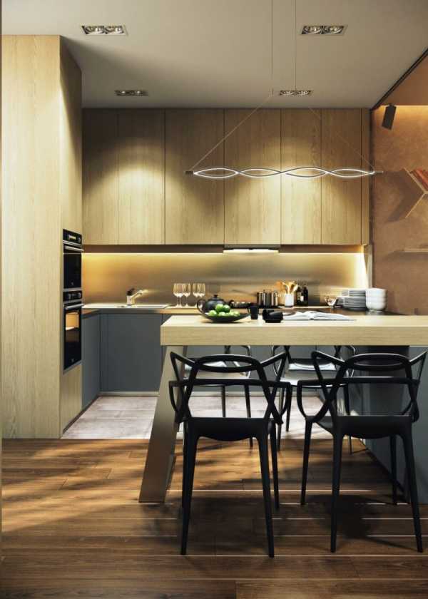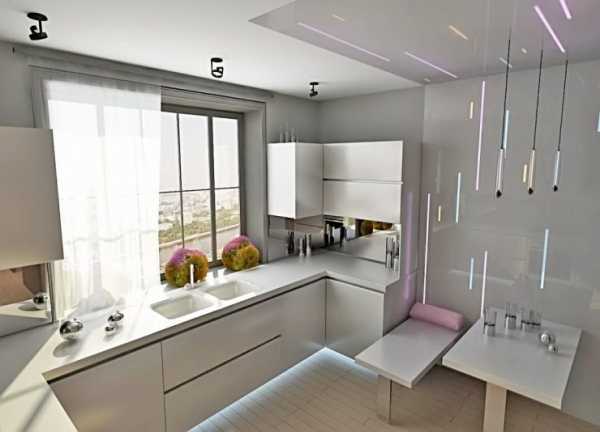 - использование световых панелей на потолке и дополнительной подсветки в рабочей или обеденной зоне;