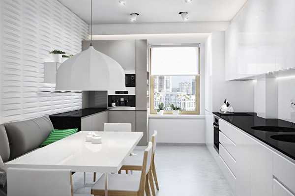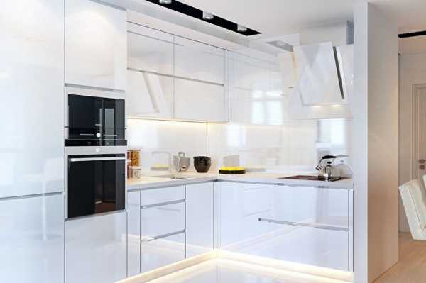Белоснежная кухня – это эталон чистоты и свободы. Белые стены, сливающиеся с однотонной потолочной поверхности, стирают границы, делая помещение максимально просторным. Если к такому оформлению добавить гарнитур с глянцевыми белоснежными фасадами, он станет, практически, невидимым, растворяясь на общем фоне. Палитра прекрасно сочетается с любыми цветами, поэтому для разнообразия можно наполнить интерьер незначительными яркими акцентами, серебристой или черной техникой, контрастной отделкой фартука и пола. Белая кухня в стиле минимализм – это великолепный вариант для маленьких помещений.