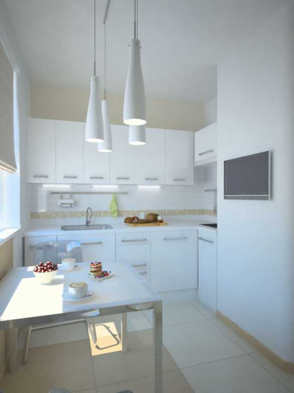 Нужно постараться рационально использовать каждый полезный метр площади. Подоконник можно расширить и переоборудовать в рабочую поверхность или барную стойку, ниши в стенах использовать под встроенную мебель. Обязательно позаботьтесь о достаточном количестве осветительных приборов и небольших вкраплениях яркого декора, который избавит от ощущения стерильности светлой кухни.