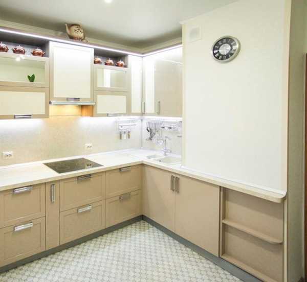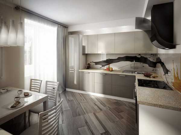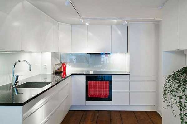 Гарнитур лучше покупать с глянцевой, зеркальной поверхностью. это поможет визуально увеличить площадь кухни.