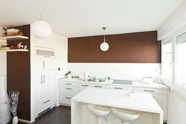 Отделка стен в минимализме может быть разной. Это могут быть обои, цветная покраска, панели или штукатурка. Самое главное – поверхность стен должна быть идеально гладкой. Все стены оформляются одинаково за исключением рабочего «фартука», например, все стены могут быть выкрашены обычной интерьерной краской, а «фартук» — сделать стеклянным, деревянным или стальным.