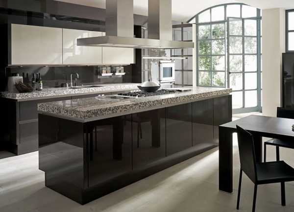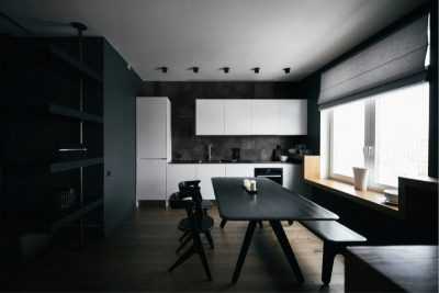 Черный цвет наделит кухню особой респектабельностью и благородством, подчеркивая отменный вкус его владельцев. В условиях маленькой кухни лучше использовать небольшие графитовые акценты, которые помогут структурировать обстановку. Выбирая черную палитру, важно позаботиться о качественном освещении, как естественном, так и искусственном – можно расширить оконные проемы, обустроить дополнительные локальные подсветки.