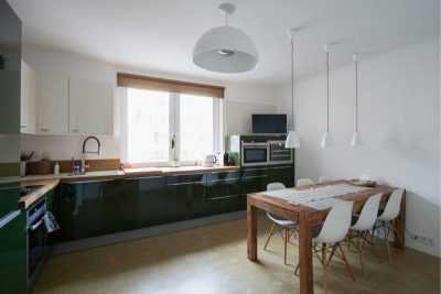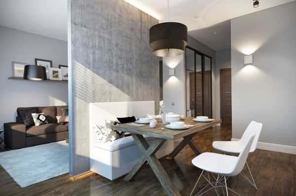 Так, к минималистичной кухне прекрасно может дополнить картину совмещение гостиной в стиле модерн (подробнее тут) и скандинавской спальни (статья по ссылке здесь)