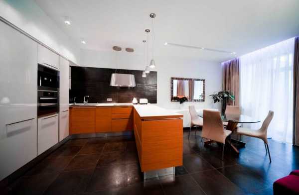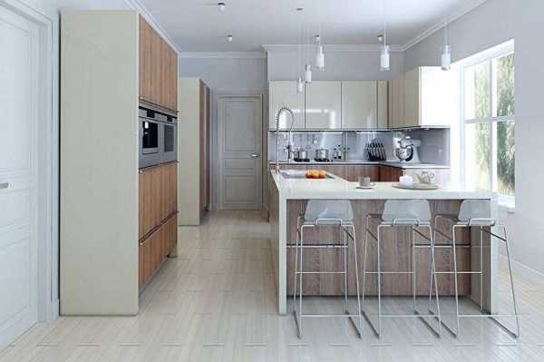 В больших просторных кухнях (кухнях-гостиных) нередко комбинируют материалы, например, в рабочей зоне укладывают кафель, а возле обеденного стола – ламинат. Наиболее экономичным вариантом выступает линолеум, но, соответственно, и срок его эксплуатации не настолько долог.