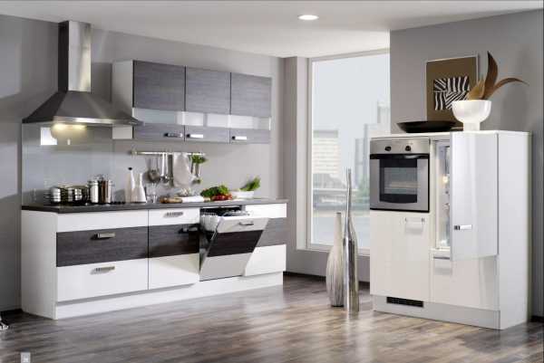 Мини-формат предполагает активное применение встроенной бытовой техники. Она поможет создать эргономичное пространство, оптимально использовать квадратные метры кухонного помещения. Даже холодильник, имеющий стандартные габариты, можно встроить в пенал больших размеров, чтобы добиться целостности общей композиции.