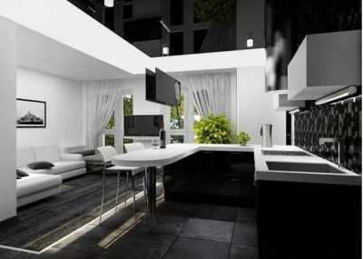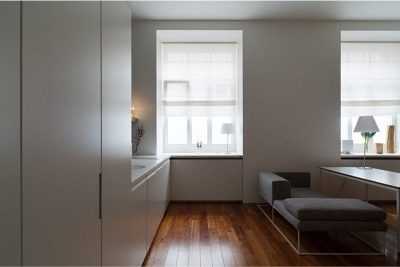 Прежде всего, необходимо отдать предпочтение исключительно светлой палитре отделки и мебели. Лучшим вариантом станет белый цвет, который сделает помещение максимально светлым и просторным. Обратите внимание на функциональную трансформирующуюся мебель – раскладные столики, стулья, выдвижные столешницы.