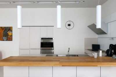 Минималистичный дизайн предполагает не только наличие свободного пространства, но и большое количество света. Актуальным для кухни в стиле минимализм является использование сразу нескольких источников света.