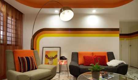 Чтобы ретро интерьер выглядел более живописно следует правильно использовать цветовую гамму. Допустимо самое неожиданное сочетание цветов, в том числе синего с оранжевым, салатного с розовым, черным, белым, которые являются основными в цветовой гамме. Оттенки этих цветов могут присутствовать в отделке стен, текстиле, обивке мебели.