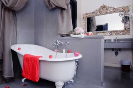 Чугунная ванна на ножках в сочетании со старой лейкой — яркий признак ретро-стиля