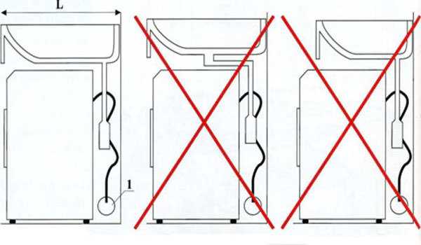 Правило№4 – запрещено располагать над стиральной машиной сливные патрубки раковины. Объясняется это тем, что вибрация стиральной машины может стать причиной разгерметизации слива умывальника. В результате на работающую технику попадет вода, а это может спровоцировать короткое замыкание и выход из строя блока управления стиралки.