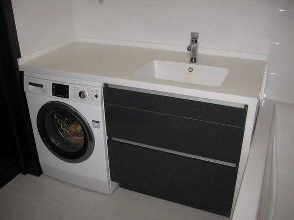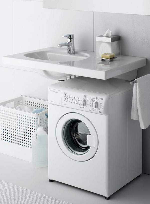 Самый эргономичный вариант — это готовый комплект от одного производителя, состоящий из раковины и стиральной машины. Все типоразмеры полностью соответствуют друг другу, поэтому панель управления машинки защищена на 100% от попадания воды. Кроме того, такой вариант обеспечивает ощутимую экономию средств.