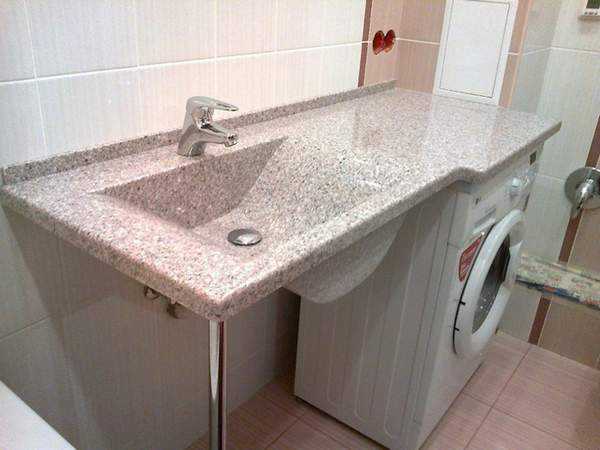 Размещение стиральной машины в нише под общей столешницей с раковиной