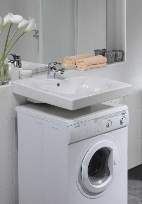 Это положительно отразится на сроке службы стиральной машинки. Такая раковина часто бывает с продолжением в аналогичный столик, на который можно составить некоторые ванные принадлежности, порошки.