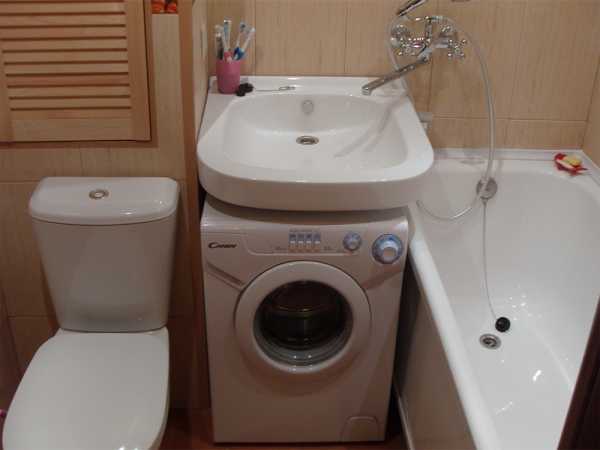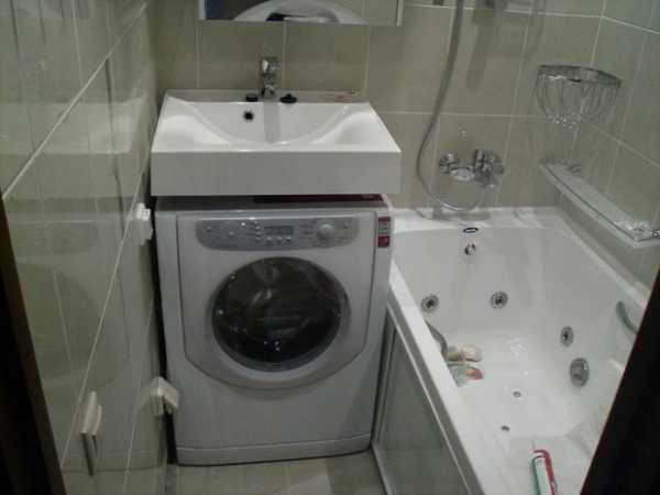 Если раковина расположена напротив входных дверей в ванную комнату, то под ней можно поместить машину. Для удобности нужно знать размер машины и форму самой раковины.