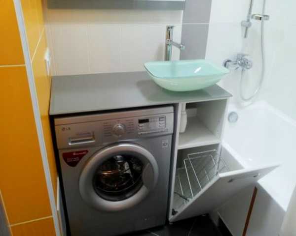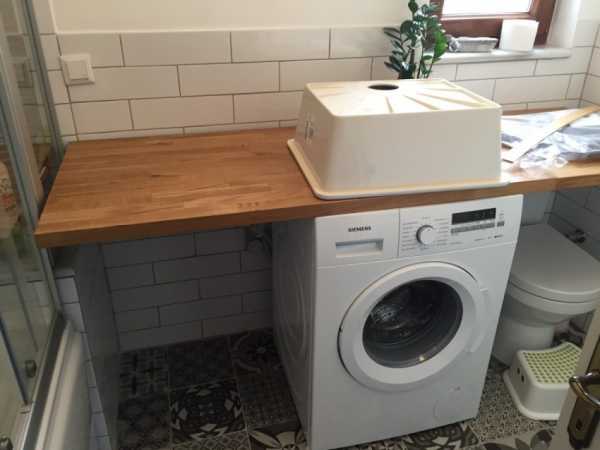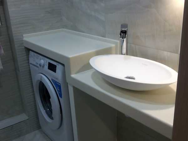 Также установить под столешницей в ванную под стиральную машинку, что объединенная вместе с раковиной.