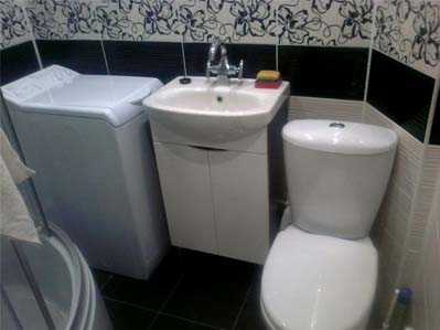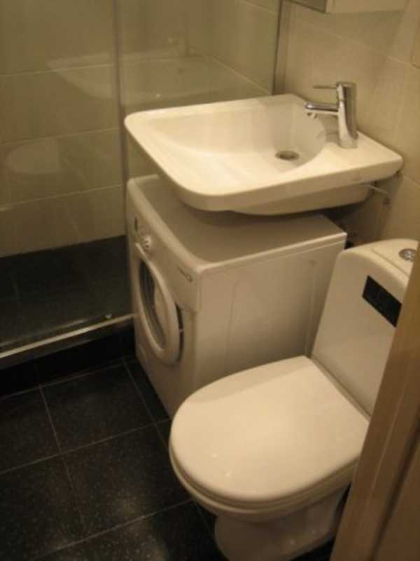 Если площадь санузла совсем небольшая, то лучше выбирать компактную стиральную машинку глубиной около 45 см. Вместительность у нее небольшая, стирать придется в несколько заходов – не совсем удобно, но если квартира скромных размеров, а стирать руками не входит в ваши планы, то придется идти на компромиссы. Стиральную машинку стандартных размеров расположить будет сложнее, но это не значит, что сделать это невозможно в принципе – просто придется идти на хитрости.