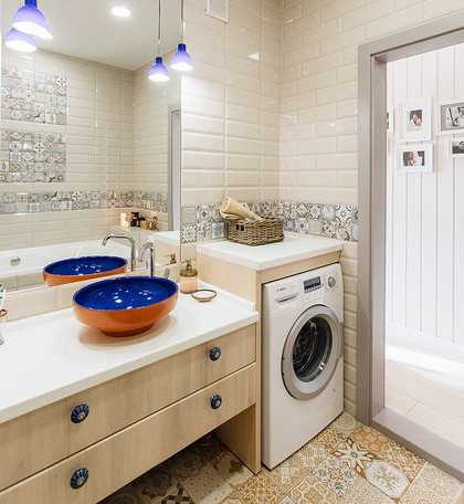 Для просторной ванной в интерьере квартиры современной планировки найти место под «стиралку» не составит труда. Однако что делать, если стиральная машина устанавливается в маленькой ванной, например в ванной хрущевки?