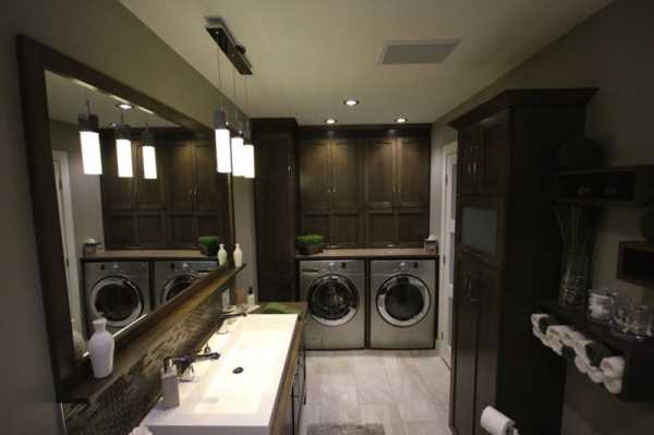 Варианты установки в большом помещении этой чудо технике много. Но наиболее актуальные это — встроенная или спрятанная в мебель, помещена в нише, поставлена вместе с машинкой для сушения.