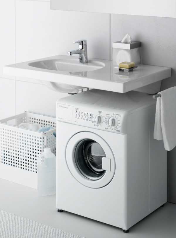 Однако переставлять этот агрегат в прихожую или на кухню, а чаще всего они такие же тесные, вовсе необязательно. Можно решить проблему проще — установить стиральную машину под специальную раковину, рассчитанную именно на такое использование.
