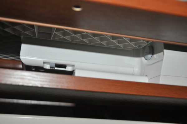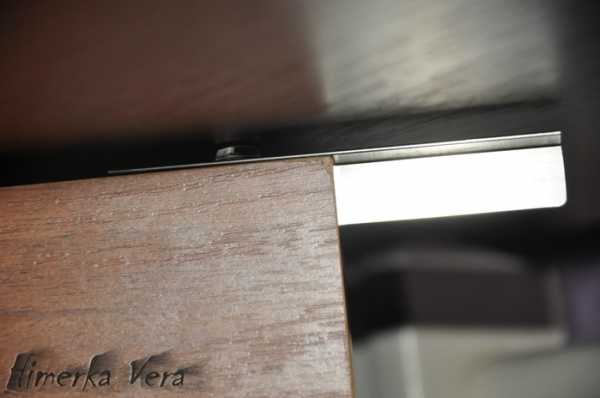 - Наличие подсветки над швейной машинкой. Это очень и очень важный пункт. В данном случае используется светодиодная выкатная полка. С ее помощью можно избавиться от лампы, которая обычно устанавливается под рукой и сильно мешает в процессе работы.